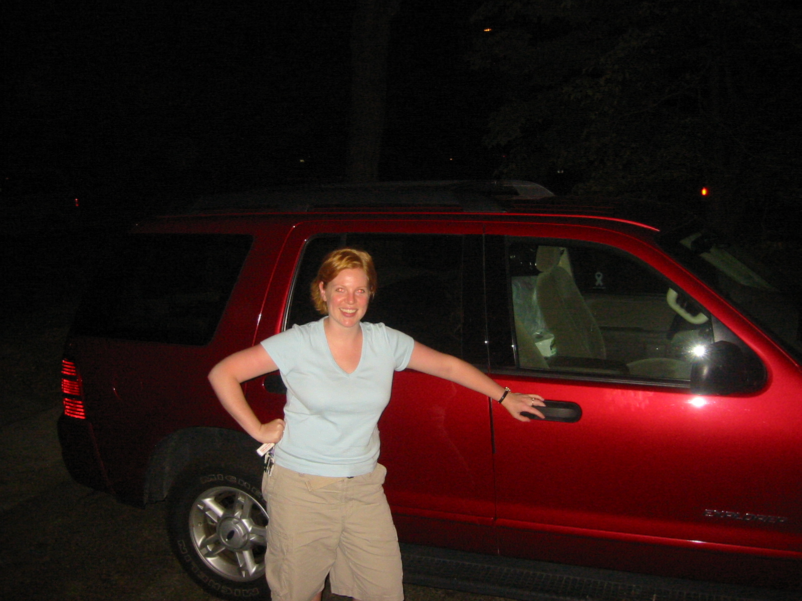 Lauren and her rental SUV, ready to hit the road.