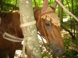 Danny liked to follow Jesse rather closely. He was afraid of getting left behind. Most of the horses wore doilies on their heads and coverings on their ears--presumably to keep the bugs at bay.