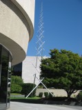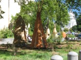 sculptures of shelter outside the American Indian museum