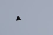This bird is carrying something in its beak. Hopefully not a mouse.