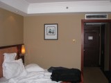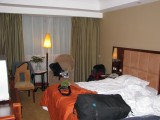 The view from our hotel window--hazy and a stark contrast to the interior of our room