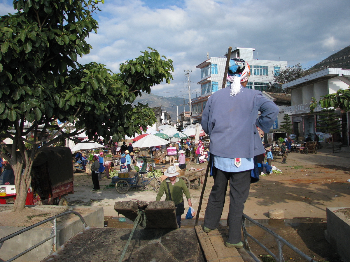 The ferry operator was greeting her passengers.