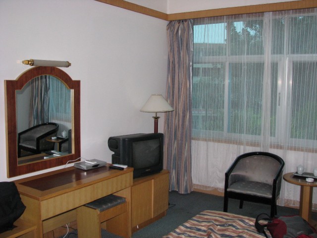 See those bedspreads? After we took this picture we went out for the day and we never saw them again. The maids would come in during the day and, to keep us on our toes, randomly change things. If we hung our towels up neatly on the towel rack, they'd pull them down and wad them on the shelf. It was an interesting game that we never really understood the rules to.