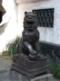 male guardian protecting the entrance to Yu'Yuan Gardens.