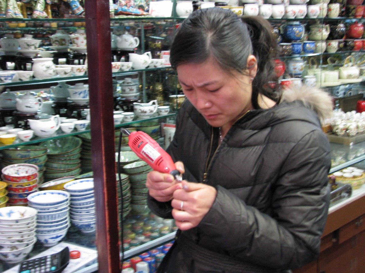 We had this woman carve several "chops," or name stamps, to give as gifts. Apparently in China, documents aren't official unless someone stamps them with their chop.