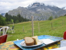 Mürren to Spielbodenalp and SprützAfter a terrific breakfast of croissants and coffee on our balcony we started out on a walk from Mürren to Spielbodenalp, a small dairy farm and guesthouse. There we had a great snack of homemade cheese and bread and watched goats fight over who got to sit on a yoga mat. Refreshed, we walked on to Sprütz, a waterfall you can walk right under! We meandered through the small town of Gimmelwald before walking back uphill to Mürren for, you guessed it, more cheese and bread on our balcony! |