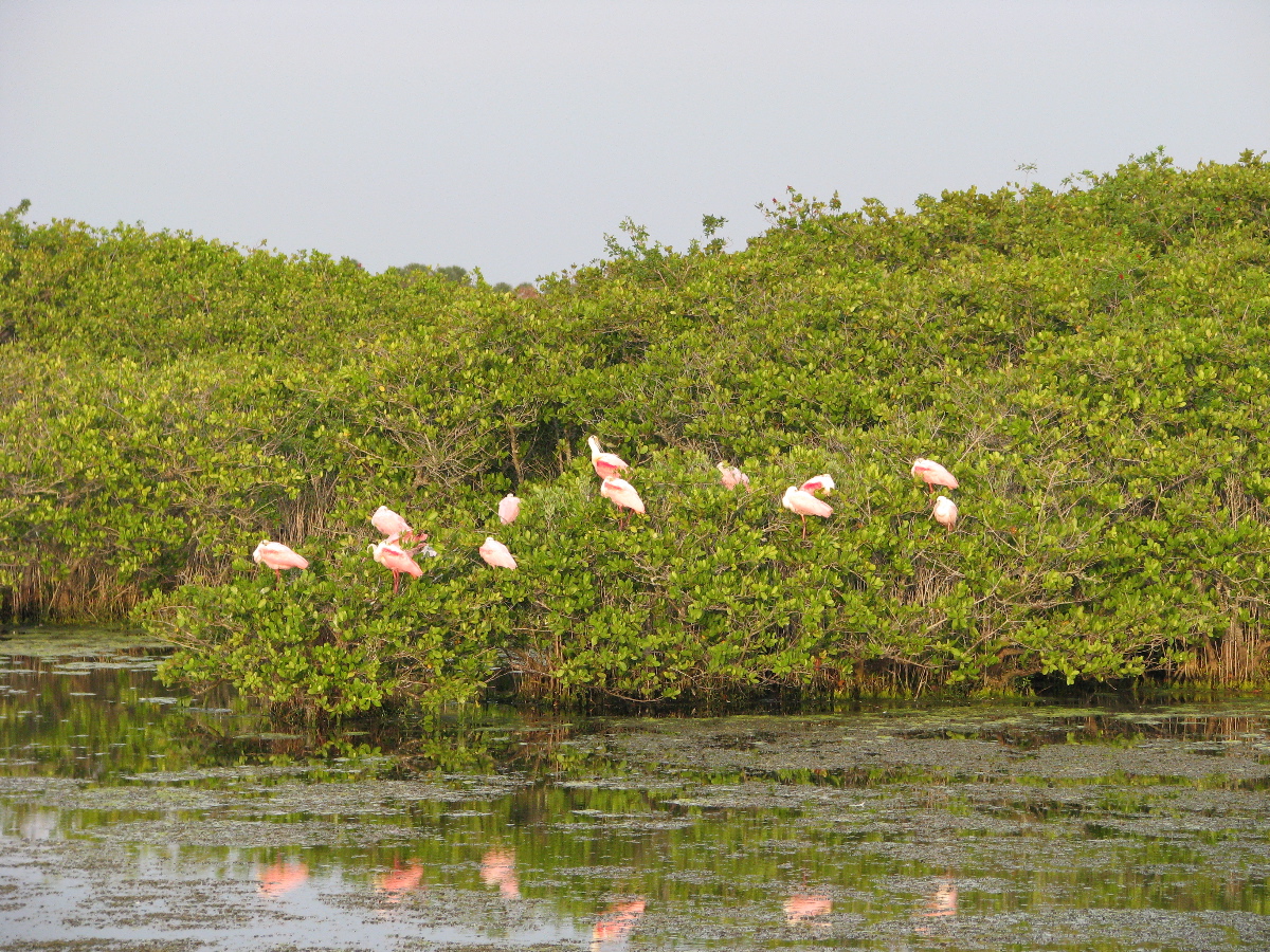 Flamingos sleeping.