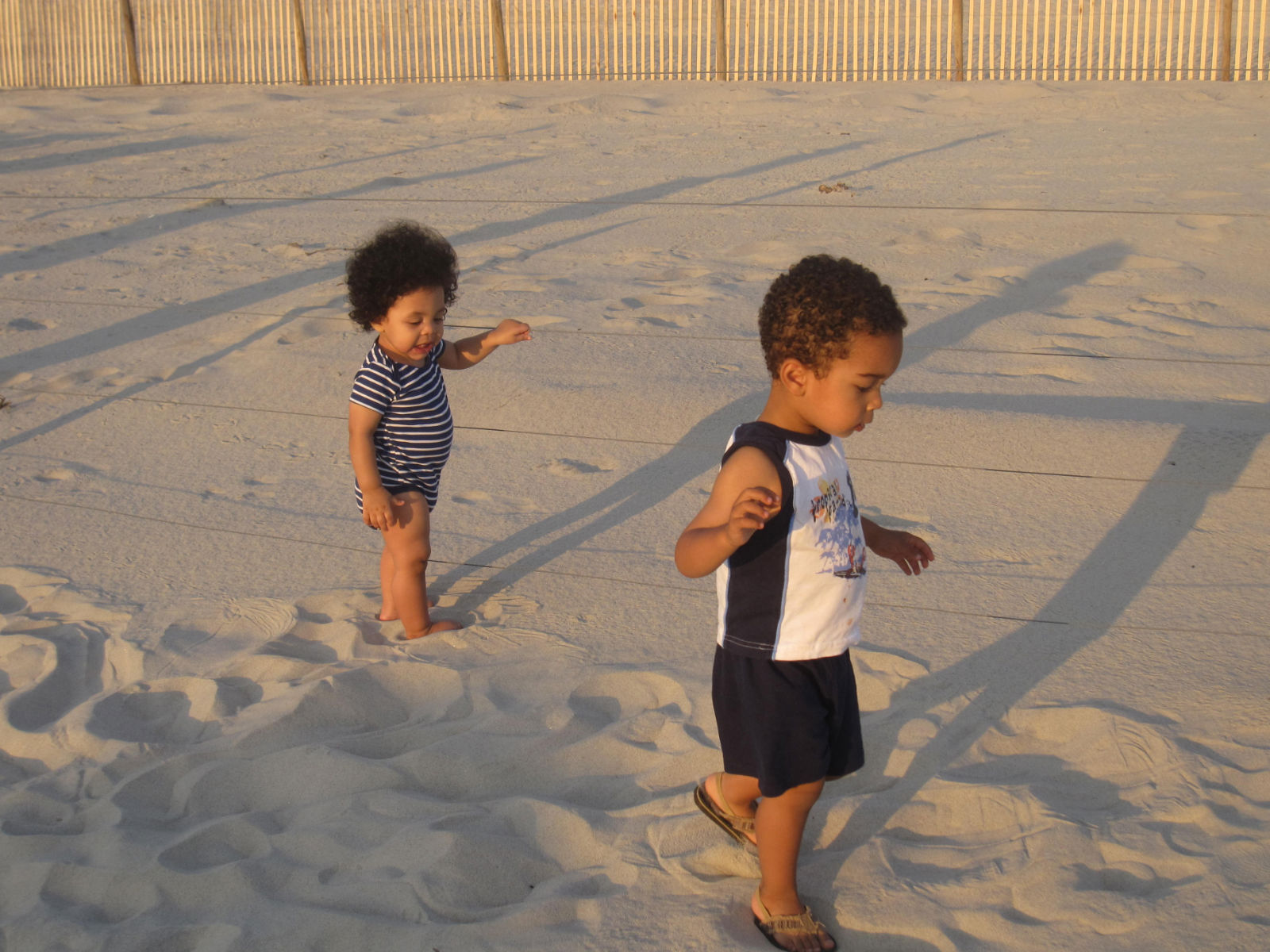 Two boys exploring the beach