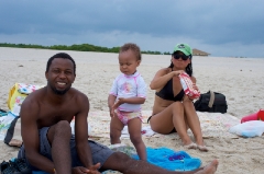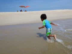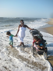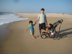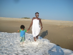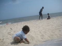 Grece introducing Elias to the ocean and the beach