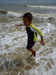 Chasing Charlie in the surf